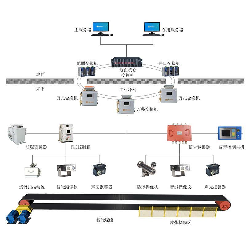 KJ1992智能皮带运输及流量平衡系统,主要应用于皮带运输设备上,具有自动精准识别皮带机运输过程中煤量多少、物料情况、皮带机运行状况等功能。可以实现运输系统内所有的瞬时输送量、平均输送量、单位时间内累计输送量、单位时间内平均输送量、阶段性大运量持续时间、多级皮带间断性大运量出现时间预测等功能。结合所有数据对皮带机进行自动调节,达到延长设备使用寿命、节能增效的目的。